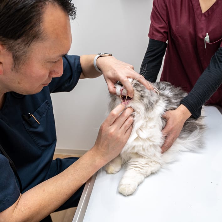 木場パークサイド動物病院では、現在みられる症状だけでなく、これまでの経過や生活環境、年齢変化も含めて丁寧に確認しながら、その子に合った呼吸器科診療・管理を行っています。